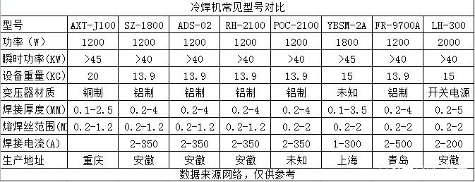 答:冷焊机焊的为什么不结实呢?首先,你得知道冷焊机不是神,不是什么都能焊,如果非要想着花个6000块钱想解决一切需要焊的,那你只能自己想明白了再来。冷焊机适合薄板焊接,对变形要求高的件的焊接,精密低温补焊,角钢,钢筋,钢结构建议电焊或二保焊,铝合金建议选激光焊,或者交流氩弧焊。关于选购冷焊机的一些建议参考:2mm以下的不锈钢,铁板,镀锌板选瞬时功率45kw-55kw的设备;焊3mm以上紫铜选瞬时功率150KW及以上的设备;焊0.6mm以上的彩色不锈钢选瞬时45kw-55kw,且0.1mm起焊的设备;焊3mm及以上的不锈钢、冷轧板、钛合金、镀锌板或者需要承压,密封等技术要求的建议瞬时功率80KW及以上的设备;模具、轴、齿等修补选瞬时功率大于55KW的设备。